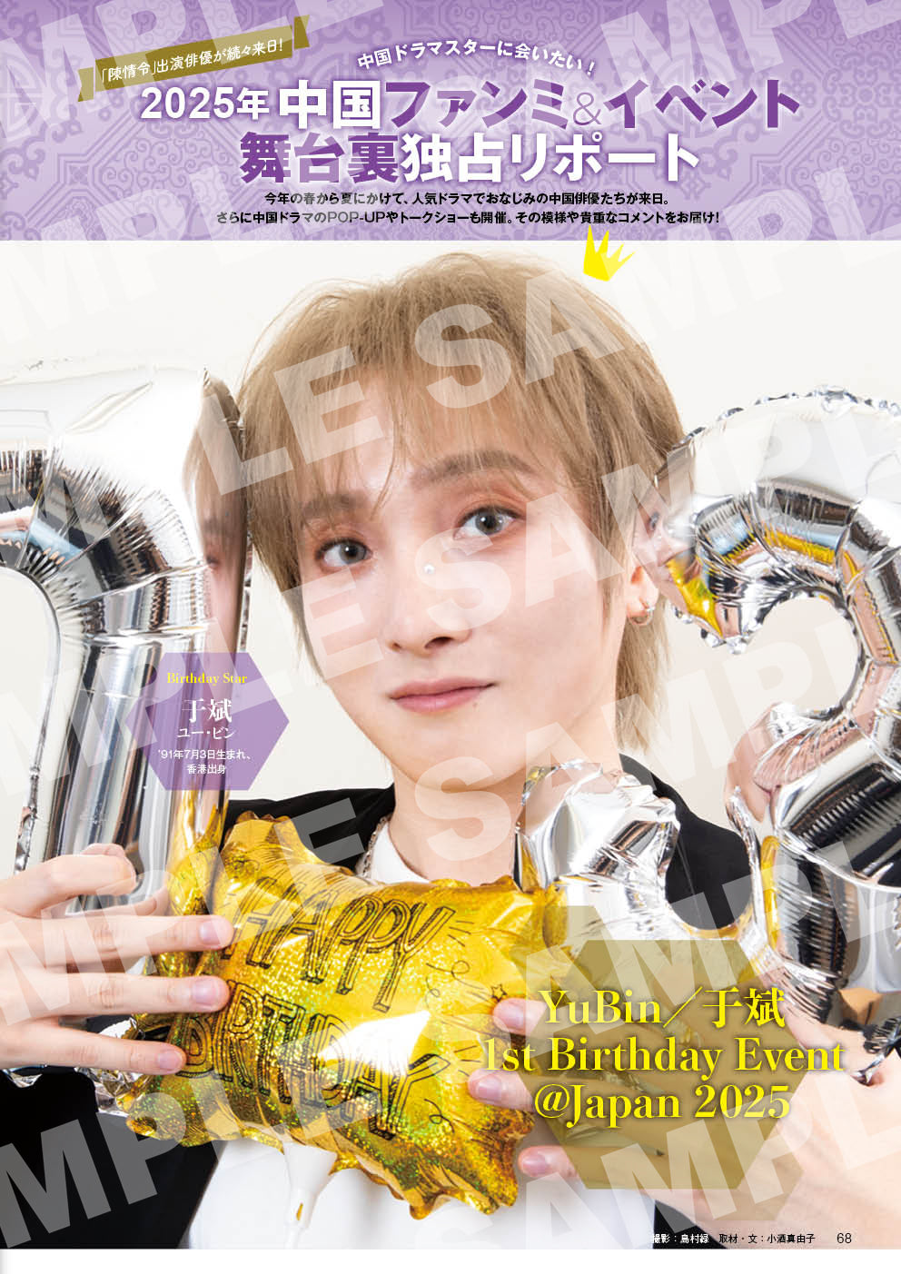 さらに、「陳情令」キャストのユー・ビン(于斌)の撮りおろしショットがダブル表紙を飾る!